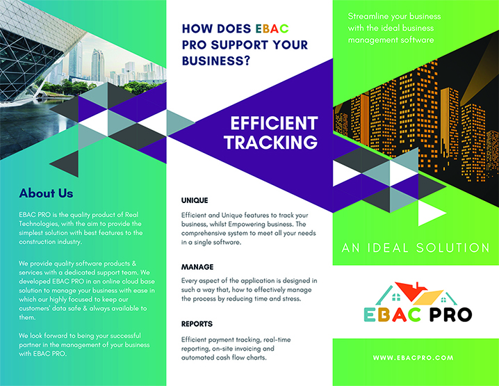EBAC PRO is the quality product of Real Technologies, with the aim to provide the simplest solution with best features to the construction industry. We provide quality software products & services with a dedicated support team. We developed EBAC PRO in an online cloud base solution to manage your business with ease in which our highly focused to keep our customers' data safe & always available to them. We look forward to being your successful partner in the management of your business with EBAC PRO.